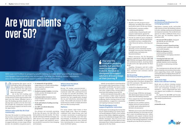 The later life market is evolving quickly, but you don’ t need to navigate it alone. Air Club is designed to support advisers at every stage of their journey.
